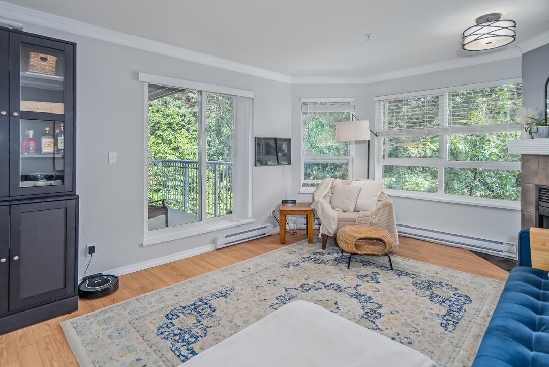 Top floor 2 bedroom unit with over 1100 sq ft of living space on the tranquil side of the building facing the greenbelt & Coquitlam River. Enjoy hours of relaxation on your very private large deck. House sized rooms include spacious kitchen, dining & living with gas fireplace. Laminate flooring in the main areas, with tile in kitchen/bathrooms & carpet in bedrooms. Primary easily fits king bed & has ensuite & w.i. closet. 2nd bdrm is almost as big! Buy with confidence – rainscreen, piping and windows in 2005. 2 parking spots! Ideal location, close to shopping, Rec Centre, West Coast Express, trails, school, and quick highway access. 2 pets – 2 cats or 1 dog (up to 50 1bs) and 1 cat. Lovely unit in a great building.